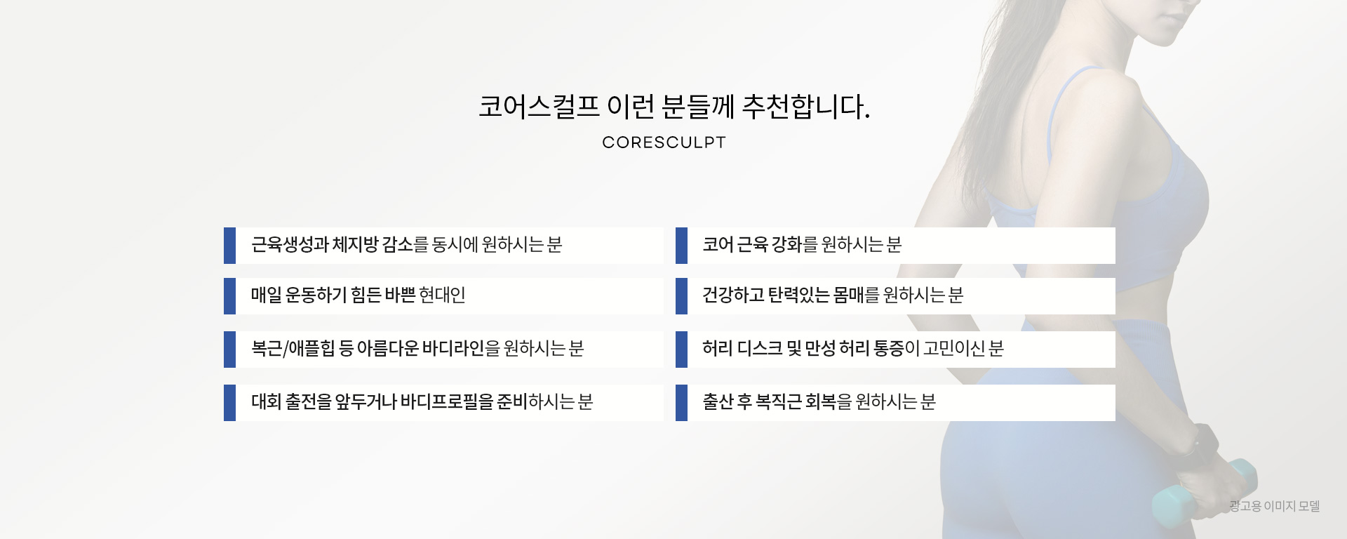 누워있어도 개신되는 라인! 미앤미 힙업 코어스컬프 코어근육 강화 기대, 체지뱅 감소 개선 기대, 허리통증 완화 기대 가만히 누워있어도 36,000번 윗몸일으키기/스쿼트 효과기대 힙업코어스컬프 개선효과 코어스컬프 핵심포인트 코어스컬프 시술부위 코어스컬프 이런 분들께 추천합니다 코어스컬프 시술 주의사항